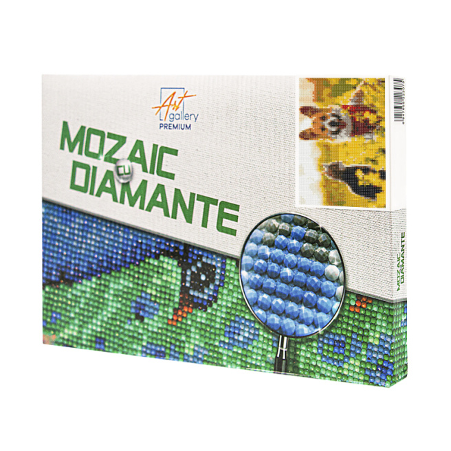 • Алмазная мозаика или алмазная вышивка - способ выкладывания картины на холсте с клейкой основой с помощью небольших акриловых страз. Этот вид творчества не требует много сил и времени для того, чтобы воссоздать ослепительную картину.