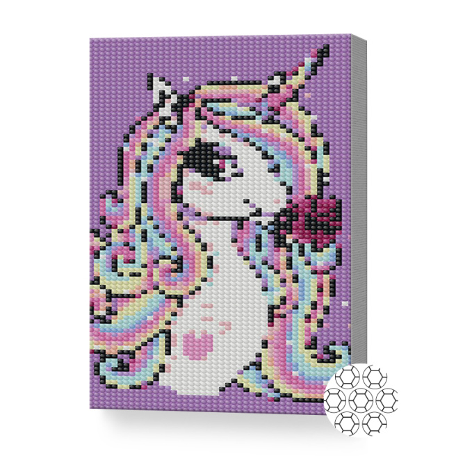 Основные преимущества - полное расслабление во время процесса и пёстрые цвета, сохраняющие свою насыщенность в течение долгого времени. В комплект входит: холст с напечатанной на нём цветной схемой и клейкой основой, набор разноцветных акриловых страз, пинцет, карандаш с силиконовой подушечкой и небольшая тарелочка для удобства работы с камнями.