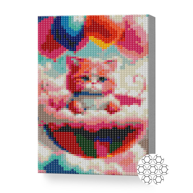 Основные преимущества - полное расслабление во время процесса и пёстрые цвета, сохраняющие свою насыщенность в течение долгого времени. В комплект входит: холст с напечатанной на нём цветной схемой и клейкой основой, набор разноцветных акриловых страз, пинцет, карандаш с силиконовой подушечкой и небольшая тарелочка для удобства работы с камнями.
