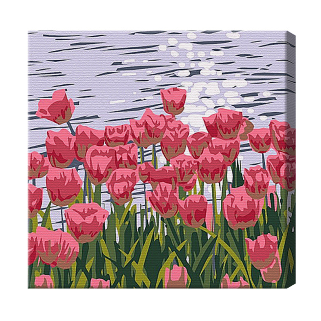 Тюльпаны и река 20x20 см, картина по номерам
