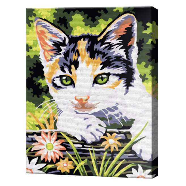 Трехцветный котенок 20x30 см, картина по номерам