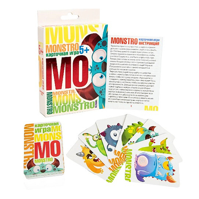 Карточная игра «MONSTRO» (Монстро) предназначена для детских развлечений. Задание игроков придумывать имена монстрам, которые будут появляться из игровой колоды. Но одно дело имена придумать, и совсем другое – запомнить их. Когда у кого-нибудь из монстров появится имя, встречая его снова нужно это имя называть, а если из колоды откроют безымянного монстра, тогда имя нужно придумать. Фантазия игроков ничем не ограничивается, называйте монстров, как пожелаете. Тот, кто лучше всех справится с поставленной задачей, станет победителем. Компактная игра «MONSTRO» Strateg (32067) не требует много игрового пространства и пригодится в дороге, на прогулке или на отдыхе.