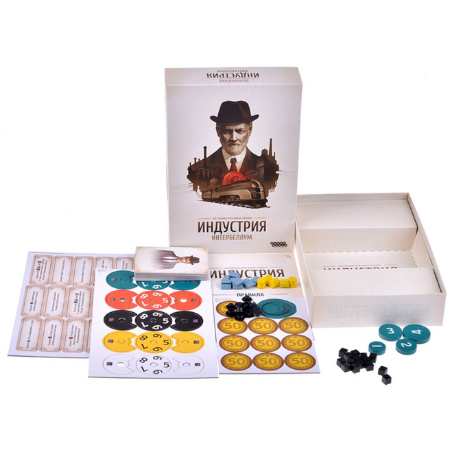 "Индустрия: Интербеллум" расширяет возможность базовой версии игры "Индустрия"! В коробке вас ждут новые карты предприятий и промышленников, диски капитала, имеющие переменные значения, а также карты университетов, карты агентов для игры в соло-режиме и все необходимые компоненты для включения в игровой процесс пятого участника!