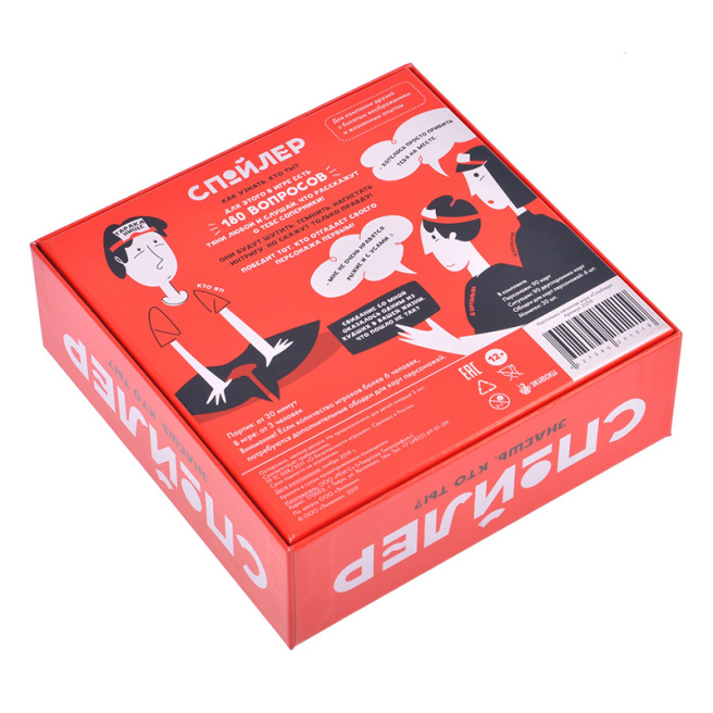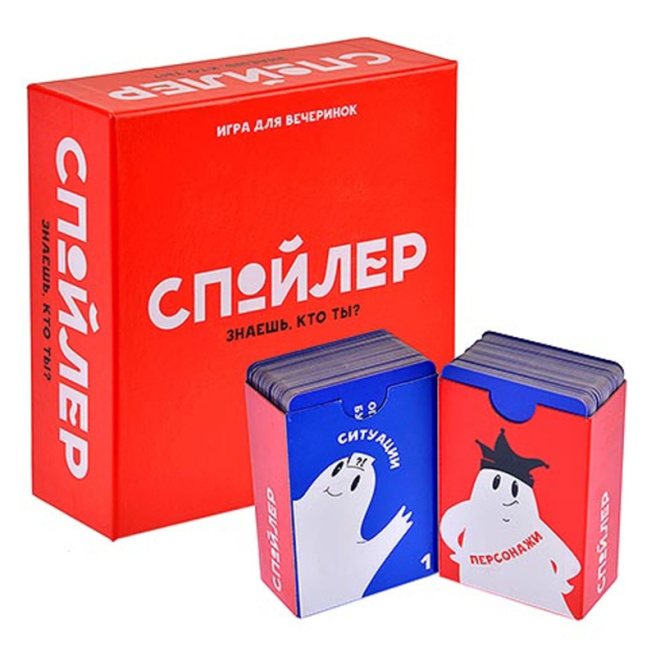 На лбу каждого игрока прячется известный персонаж. Чтобы угадать, кто у вас, возьмите карточку с готовой вопросительной ситуацией. Остальные игроки должны представить своего персонажа в этой ситуации и ответить на вопрос. Они обязаны говорить правду, но при этом должны избегать спойлеров: не все рассказывать, замалчивать и говорить двусмысленно!