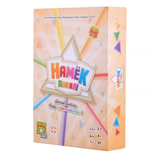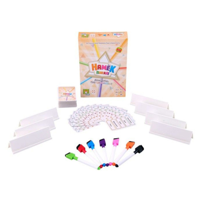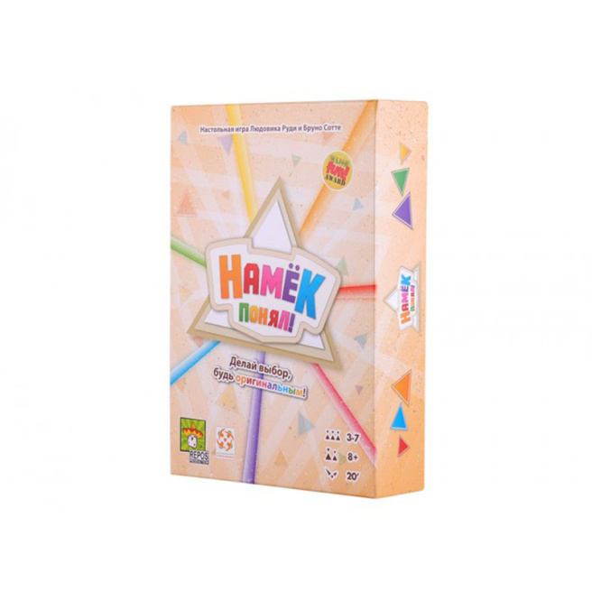 В кооперативной настольной игре Намёк понял! (Just One) одному из игроков, исполняющему роль ведущего, предстоит отгадать слово по тем подсказкам, которые он получит от других. Слова для загадывания написаны на карточке, которую ведущий, не глядя, располагает на пластиковой подставке лицом от себя, после чего выбирает номер своего задания. Затем остальные игроки стирающимися маркерами пишут на своих подставках подсказки, состоящие только из одного слова. При этом нужно стараться, не сговариваясь с товарищами, выбрать понятную, но в то же время оригинальную подсказку, которую никто не повторит — ведь одинаковые слова будут удалены из игры!