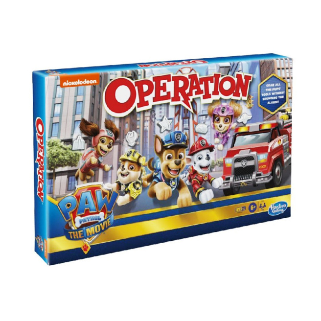 Настольная игра Operation: Paw Patrol The Movie Edition вдохновлена веселыми и захватывающими сценами из фильма Nickelodeon «Щенячий патруль». Игроки помогают щенкам спасти положение, но они должны обращать внимание на звуковой сигнал!