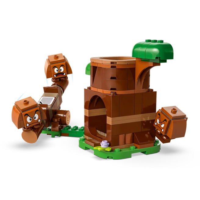 Ролевые игры и многое другое с набором LEGO Super Mario Goomba and Playground (71433) . Это отличный подарок на любой праздник для мальчиков, девочек и всех поклонников Super Mario от семи лет и старше. В эту коллекционную модель Nintendo входят три фигурки Гумбы, сборный ствол дерева и качели для творческих игр. Нажмите рычаг на задней части ствола дерева, чтобы Гумба выпрыгнул. Затем вы можете играть с Гумбами на качелях или складывать их в кучу, чтобы построить башню Гумбы.