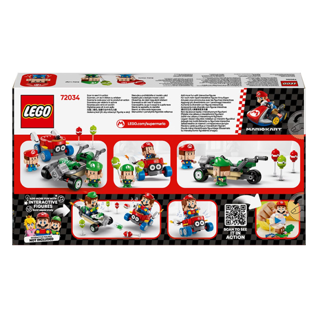 Поместите фигурку LEGO® Mario, LEGO® Luigi или LEGO Peach (из наборов 71439, 71440 или 71441 — продаются отдельно) в любой карт для интерактивной игры, которая активирует звуковые/визуальные эффекты Mario Kart для старта гонки, гудения и дрейфа.
