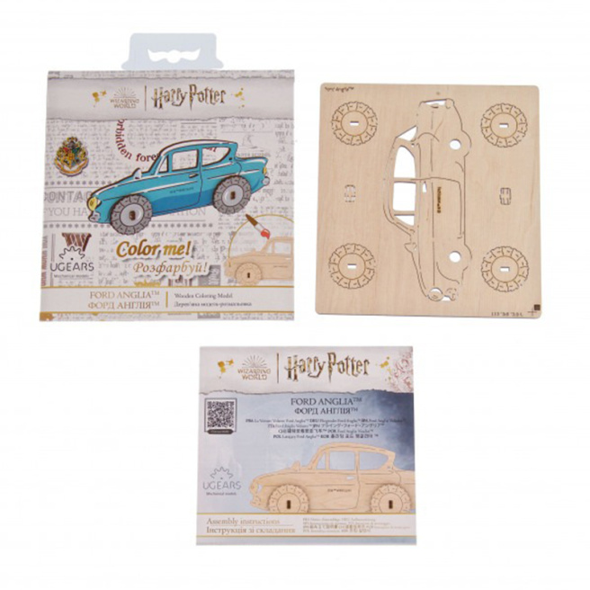 Деревянная модель для раскрашивания Ugears Ford Anglia™ с механическими элементами. Движущийся элемент: колеса.