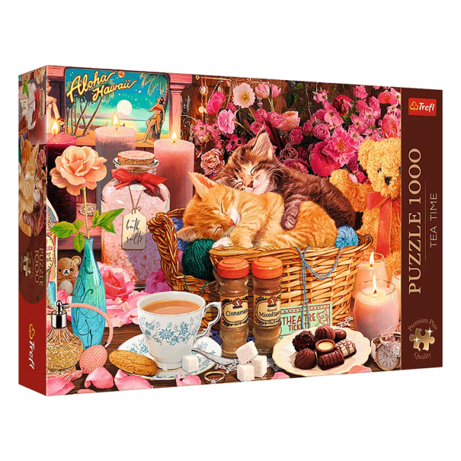 Пазлы "Все приятное" представляют разнообразные удовольствия: сладости, цветы, котята, которые спят в корзине и многое другое. После их составления будет создано изображение размером 683x480 мм.