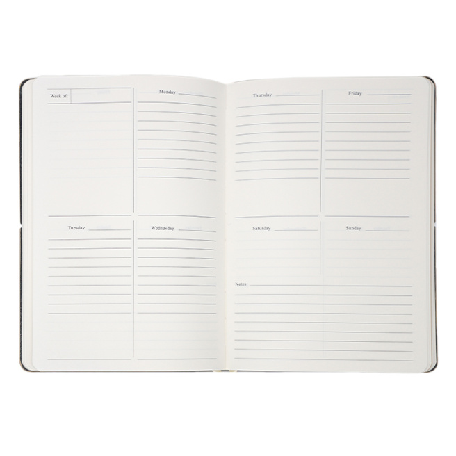 Вторая половина — блокнот в линию для различных записей. Гибкая обложка с стильным дизайном и резинка для надежного закрытия обеспечивают удобство и защиту. Компактный и функциональный, этот еженедельник станет надежным спутником для работы, учебы и повседневных дел.