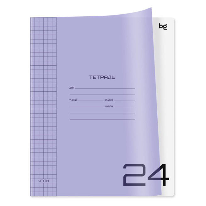 Тетрадь BG серии UniTone. Neon в клетку. Формат А5. Вид крепления – скрепка. Внутренний блок – это 24 листа, офсетная бумага плотностью 65 г/м². Обложка выполнена из мягкого полупрозрачного пластика неонового цвета, также имеется подкладной лист из качественной мелованной бумаги 110 г/м2 для подписи тетрадей. Преимущество таких тетрадей заключается в том, что для сохранения внешнего вида не нужно покупать обложки на тетрадь, т.к. сама обложка тетради выполнена из прочного износостойкого пластика. Тетради с лаконичным дизайном идеально подойдут для школьников любого года обучения.