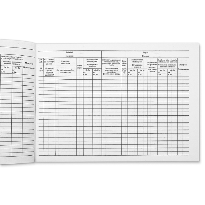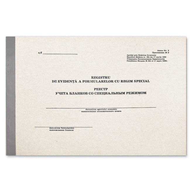 Бухгалтерская книга ;Registru de evidenta a formularelor cu regim special;, на 50 листов, изготовлена из качественной белой, офсетной бумаги.