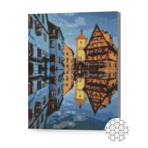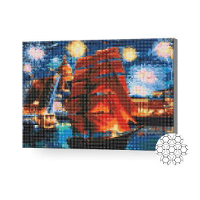 Oiță albă cu clopoțel, 20x20 cm, mozaic cu diamante